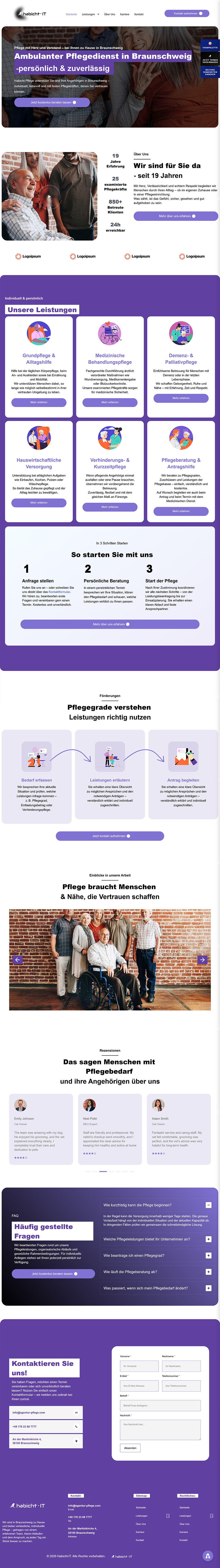 Wir setzen Ihre Website BFSGkonform um, indem wir Ihre bestehenden Inhalte in unsere geprüfte Struktur integrieren. Dabei ist unser Ziel die Zugänglichkeit für alle Nutzergruppen und die Einhaltung der gesetzlichen Nachweispflichten. Lassen Sie uns gemeinsam dafür sorgen, dass Ihre digitale Aufstellung so professionell und zuverlässig ist wie Ihre tägliche Pflegeleistung.